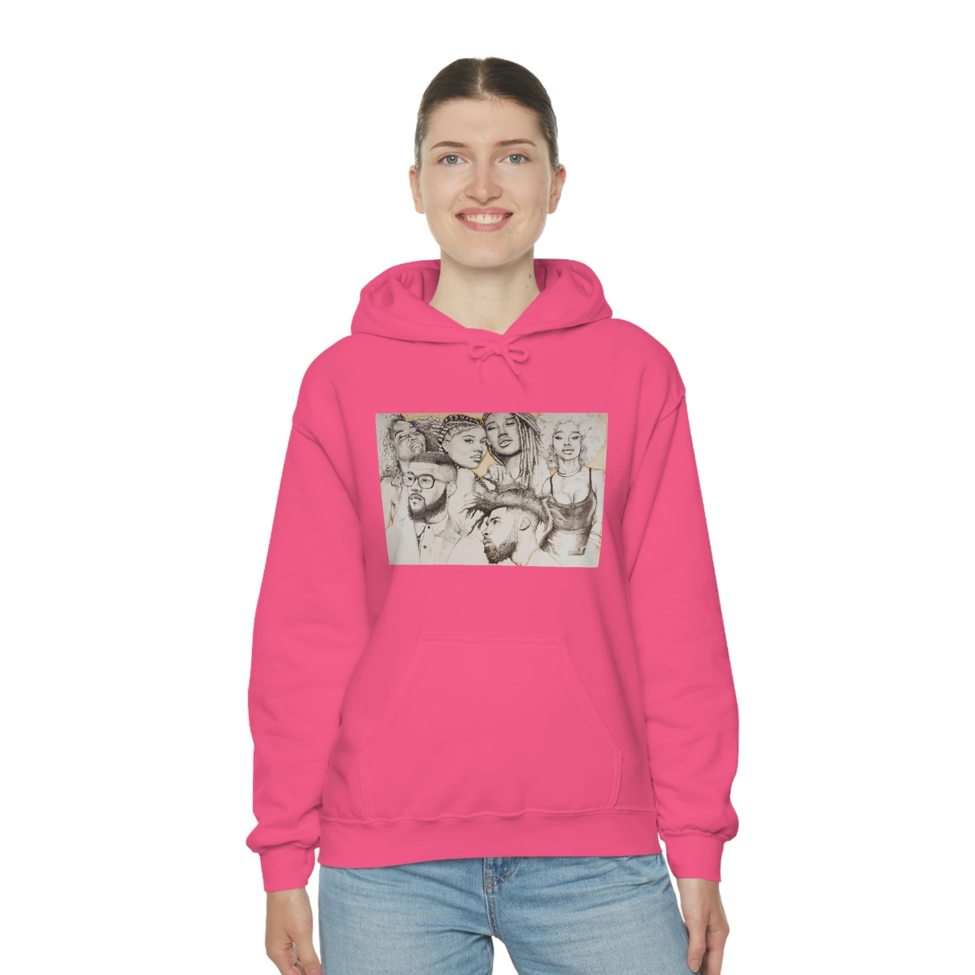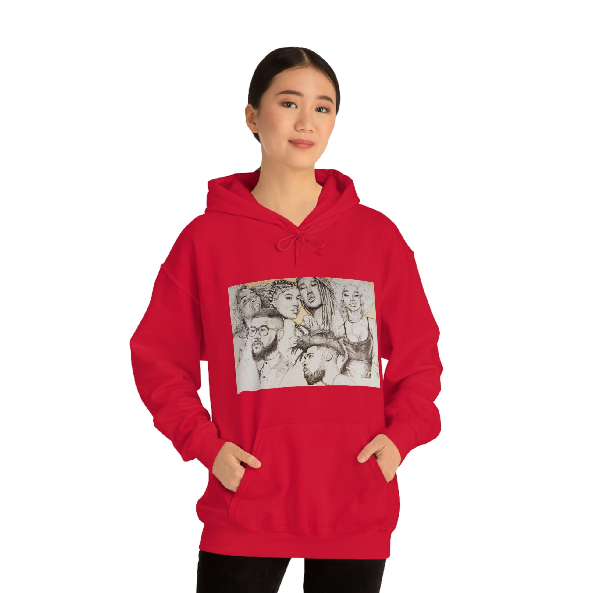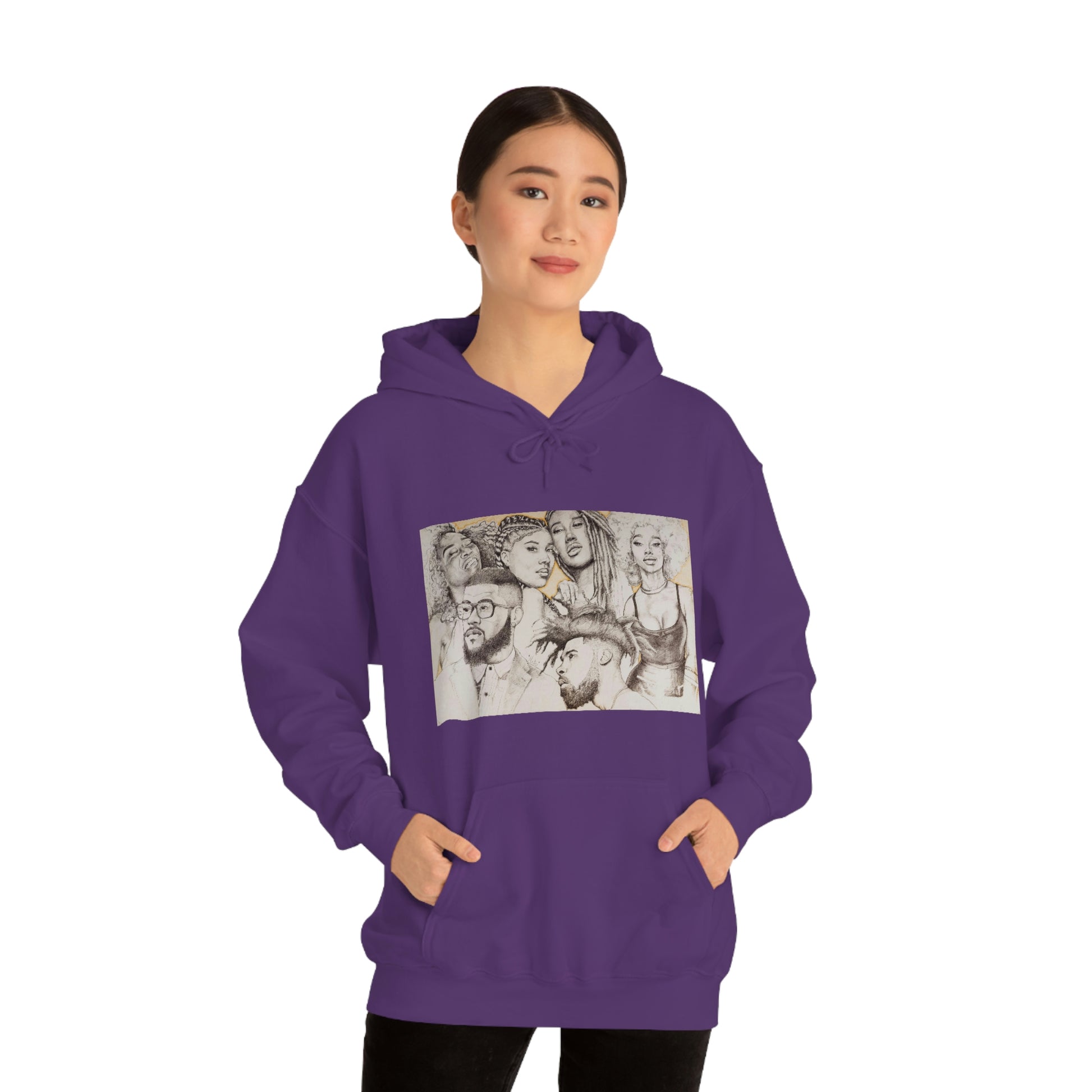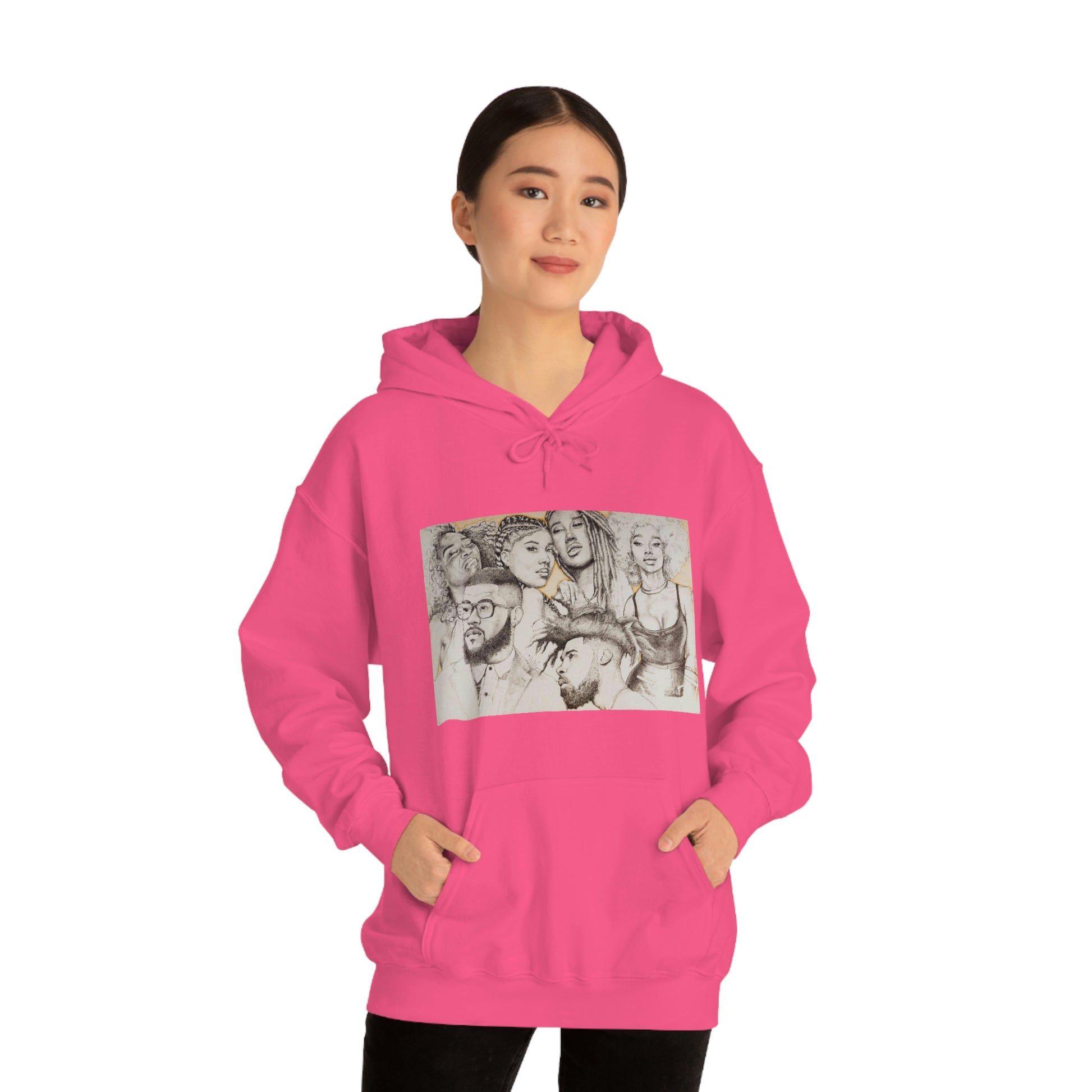 This unisex heavy blend hooded sweatshirt is relaxation itself. Made with a thick blend of cotton and polyester, it feels plush, soft and warm, a perfect choice for any cold day. In the front, the spacious kangaroo pocket adds daily practicality while the hood's drawstring is the same color as the base sweater for extra style points.