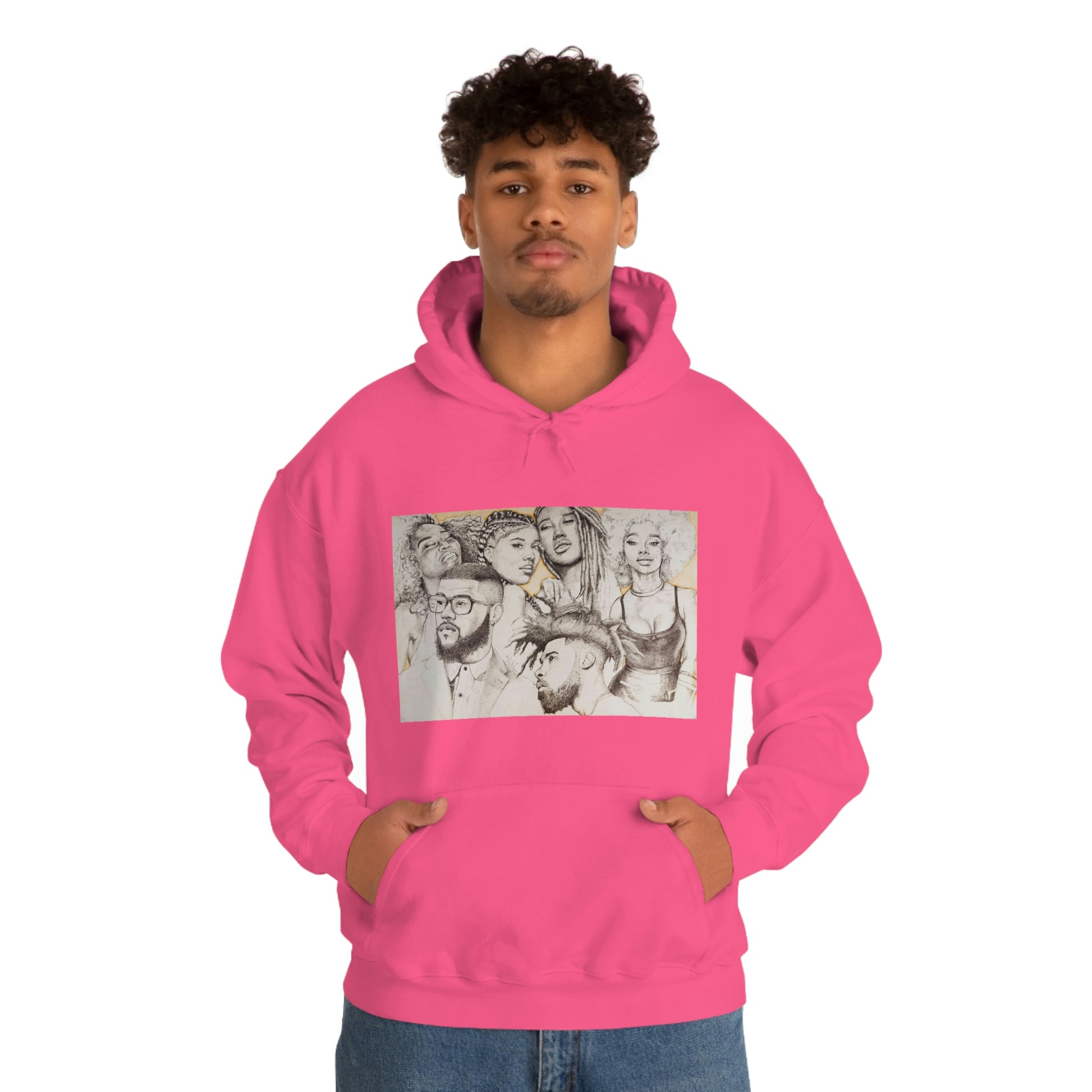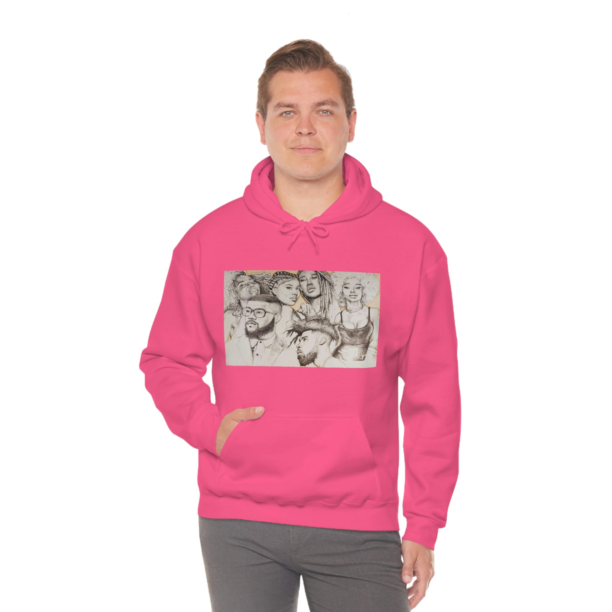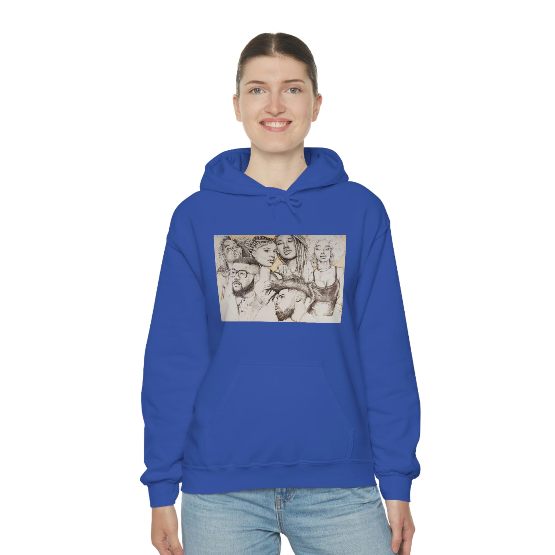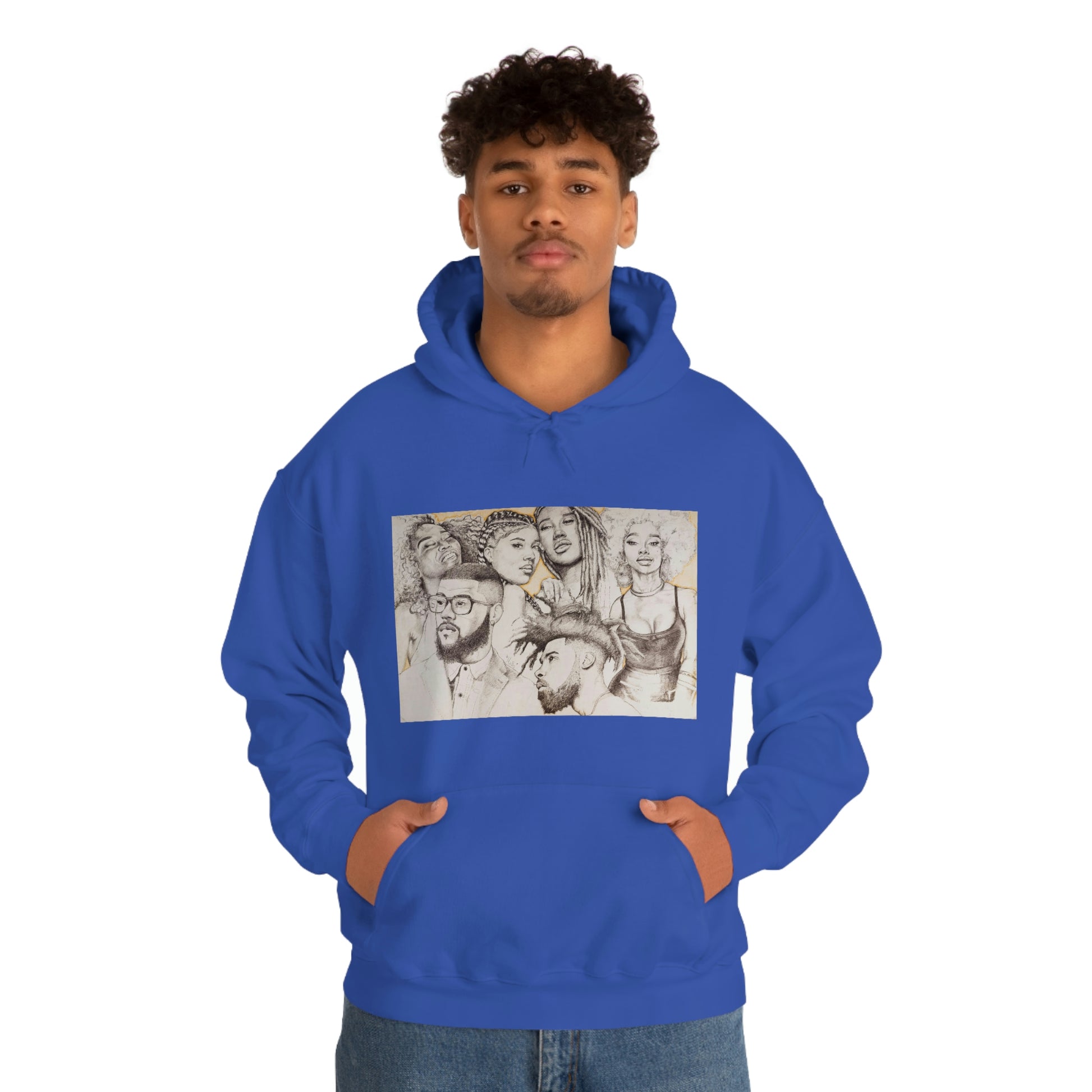 This unisex heavy blend hooded sweatshirt is relaxation itself. Made with a thick blend of cotton and polyester, it feels plush, soft and warm, a perfect choice for any cold day. In the front, the spacious kangaroo pocket adds daily practicality while the hood's drawstring is the same color as the base sweater for extra style points.