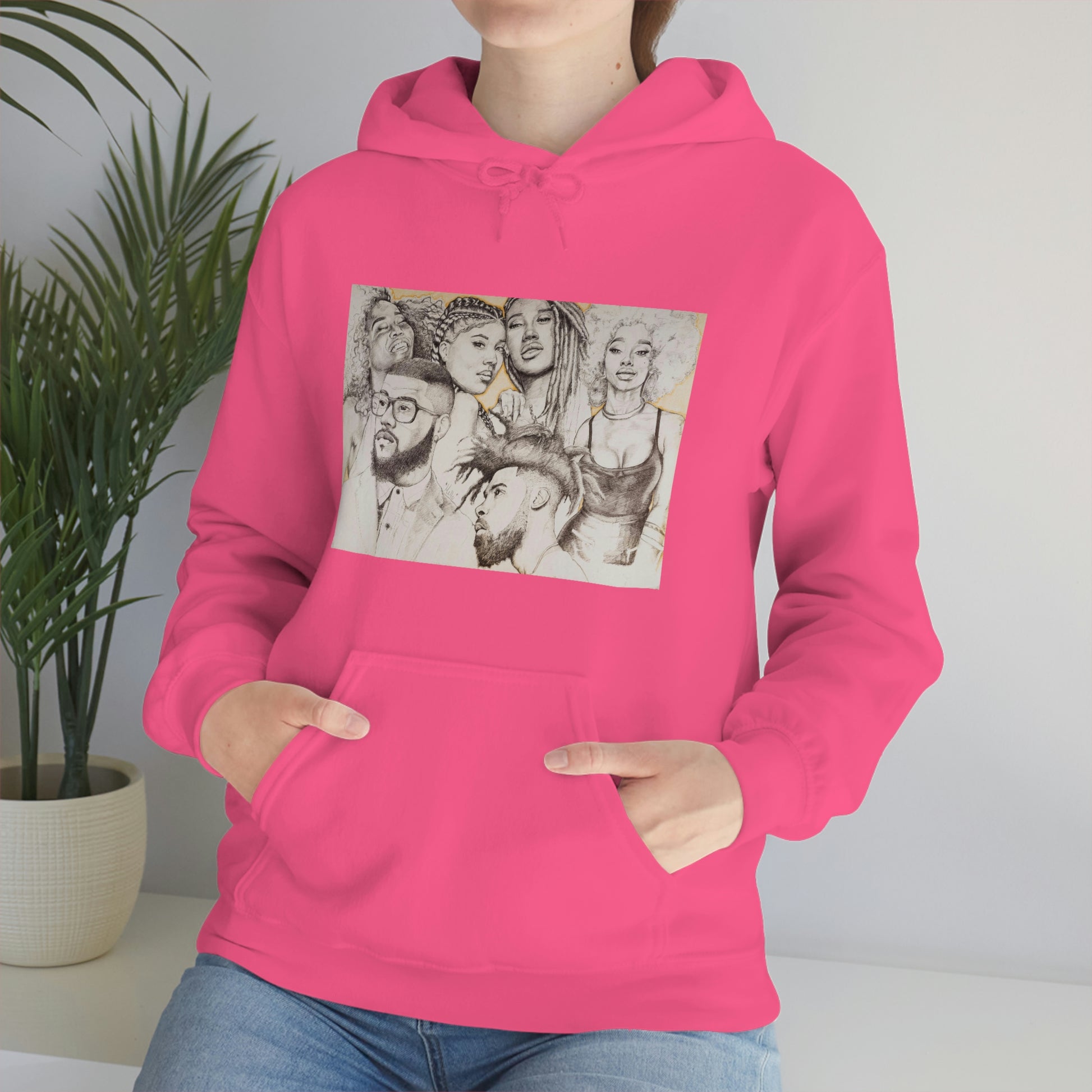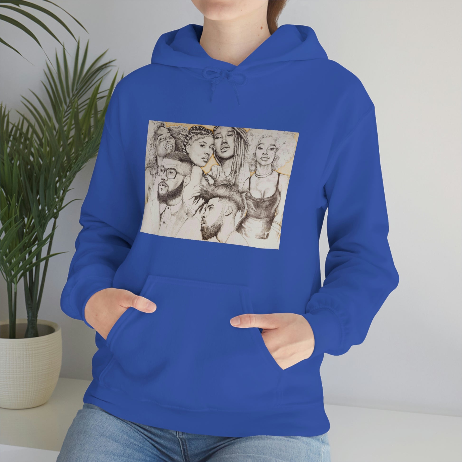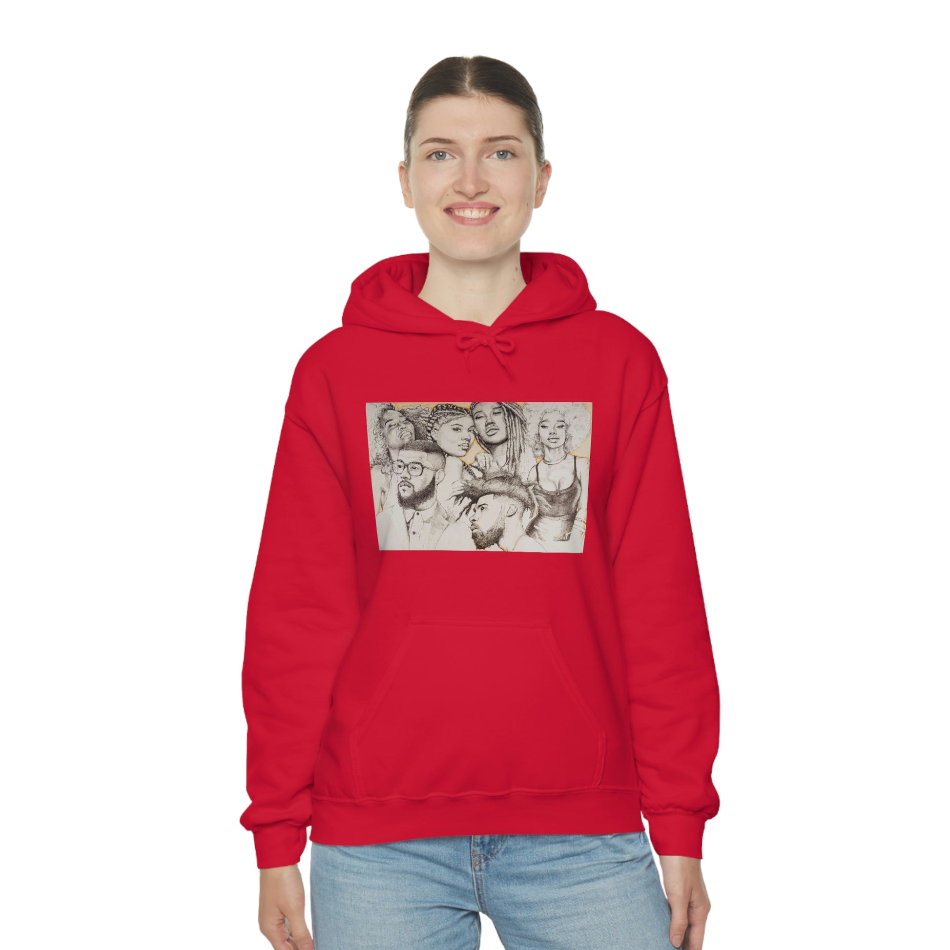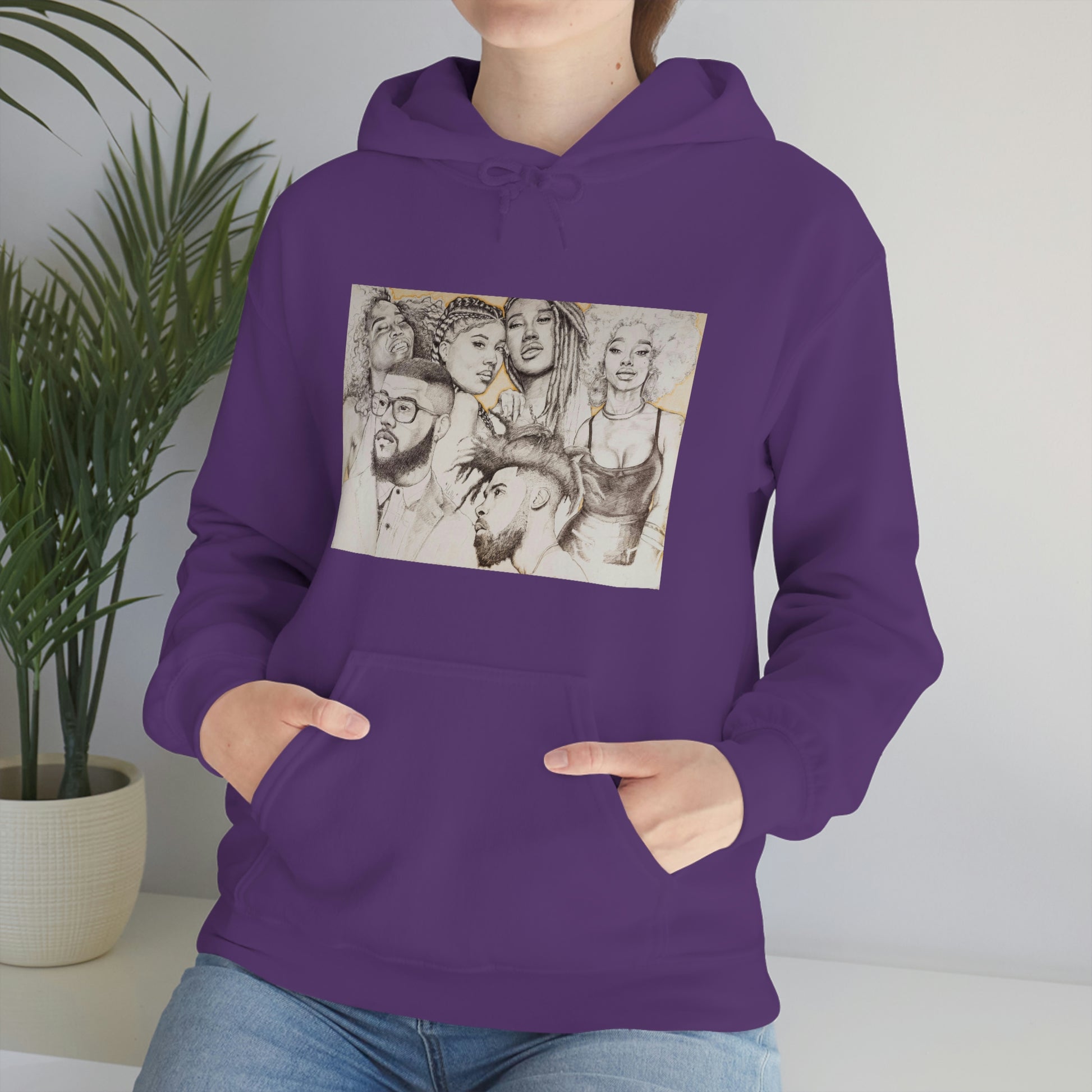 This unisex heavy blend hooded sweatshirt is relaxation itself. Made with a thick blend of cotton and polyester, it feels plush, soft and warm, a perfect choice for any cold day. In the front, the spacious kangaroo pocket adds daily practicality while the hood's drawstring is the same color as the base sweater for extra style points.