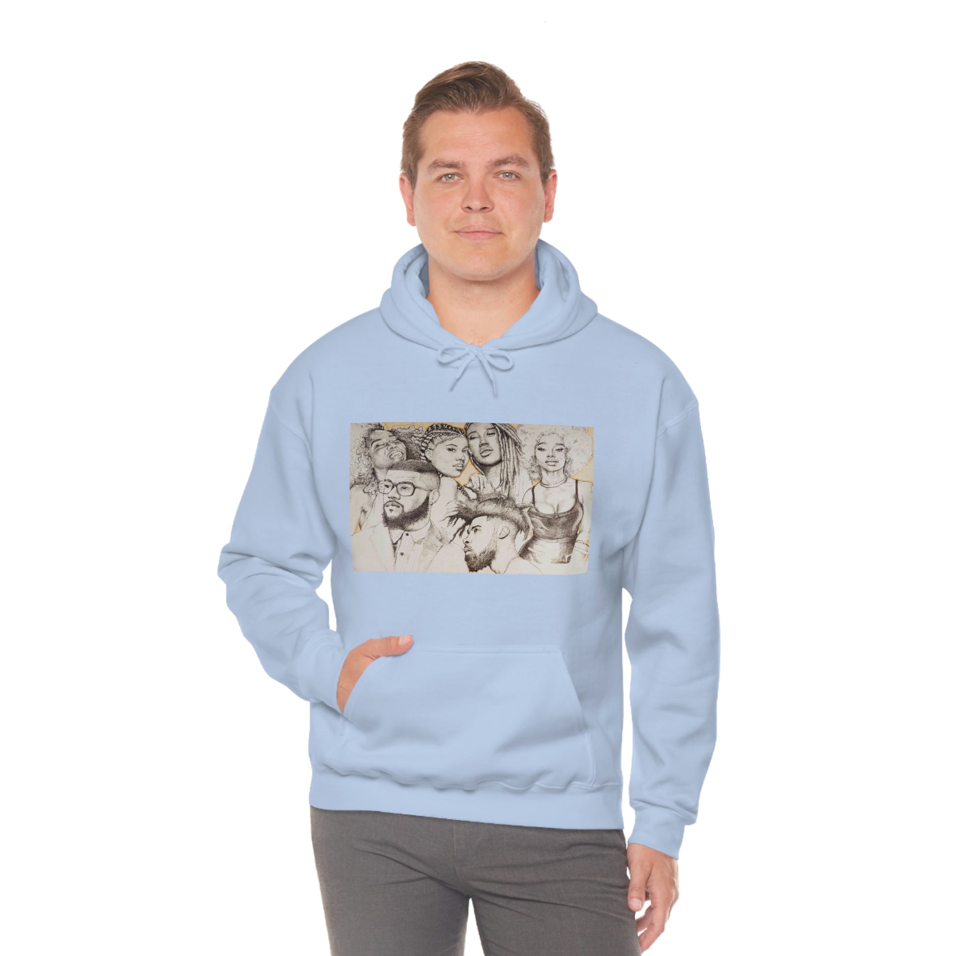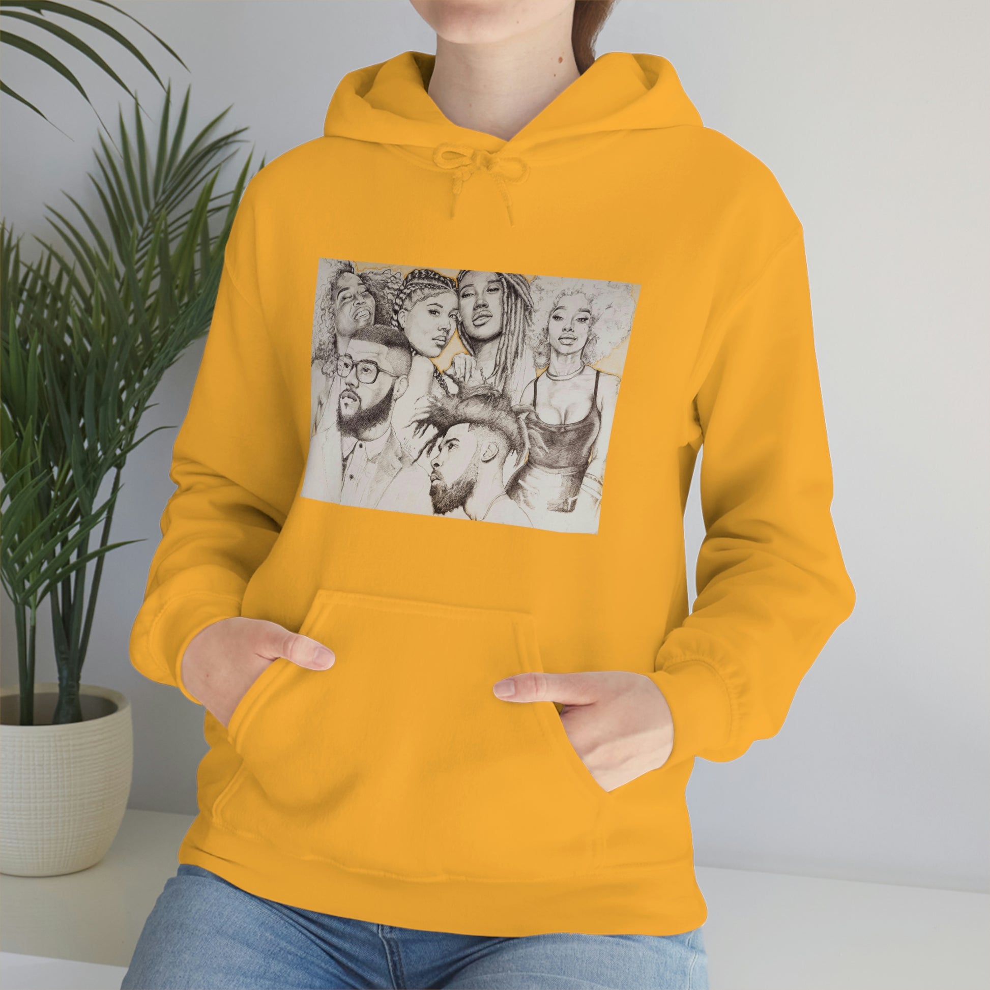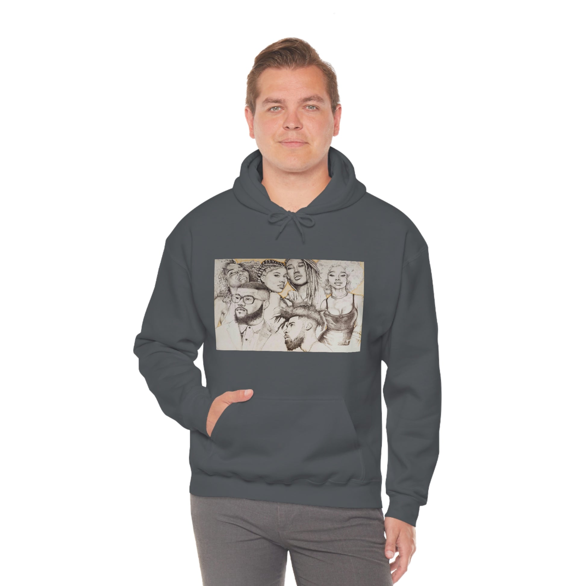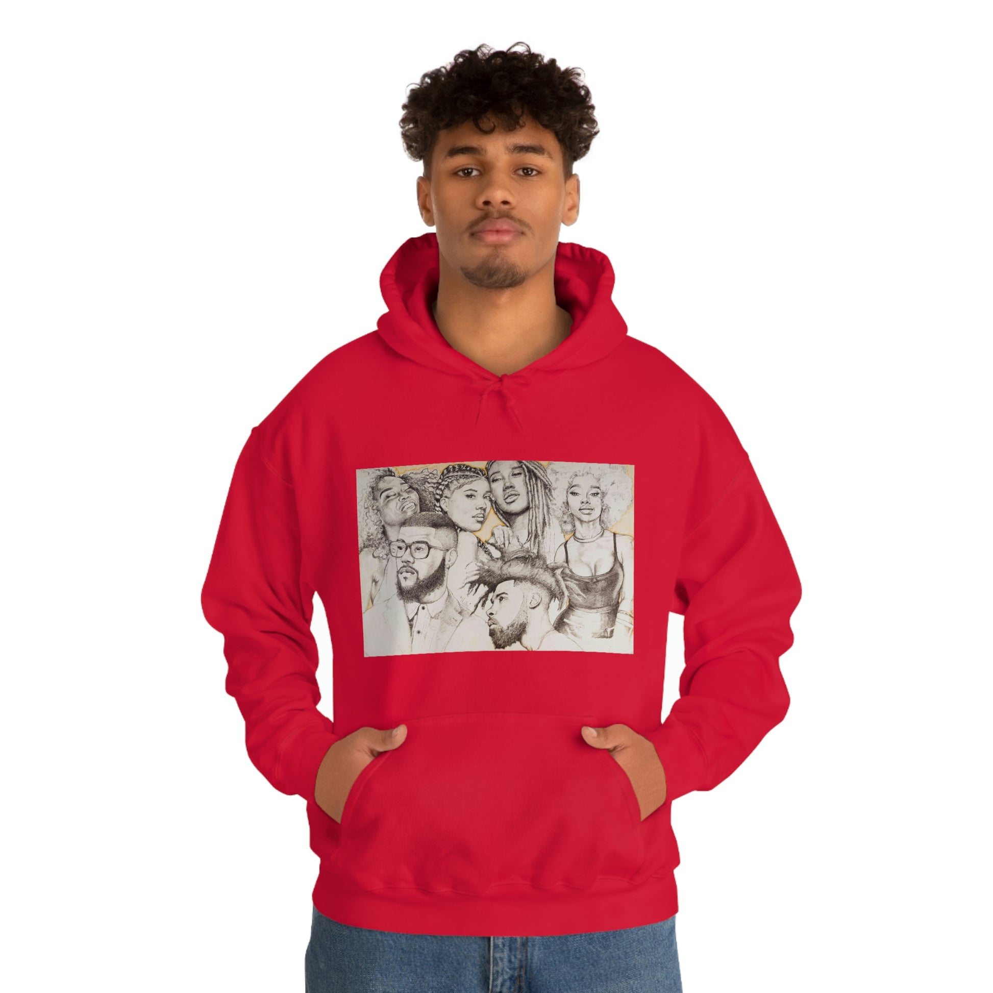 This unisex heavy blend hooded sweatshirt is relaxation itself. Made with a thick blend of cotton and polyester, it feels plush, soft and warm, a perfect choice for any cold day. In the front, the spacious kangaroo pocket adds daily practicality while the hood's drawstring is the same color as the base sweater for extra style points.
