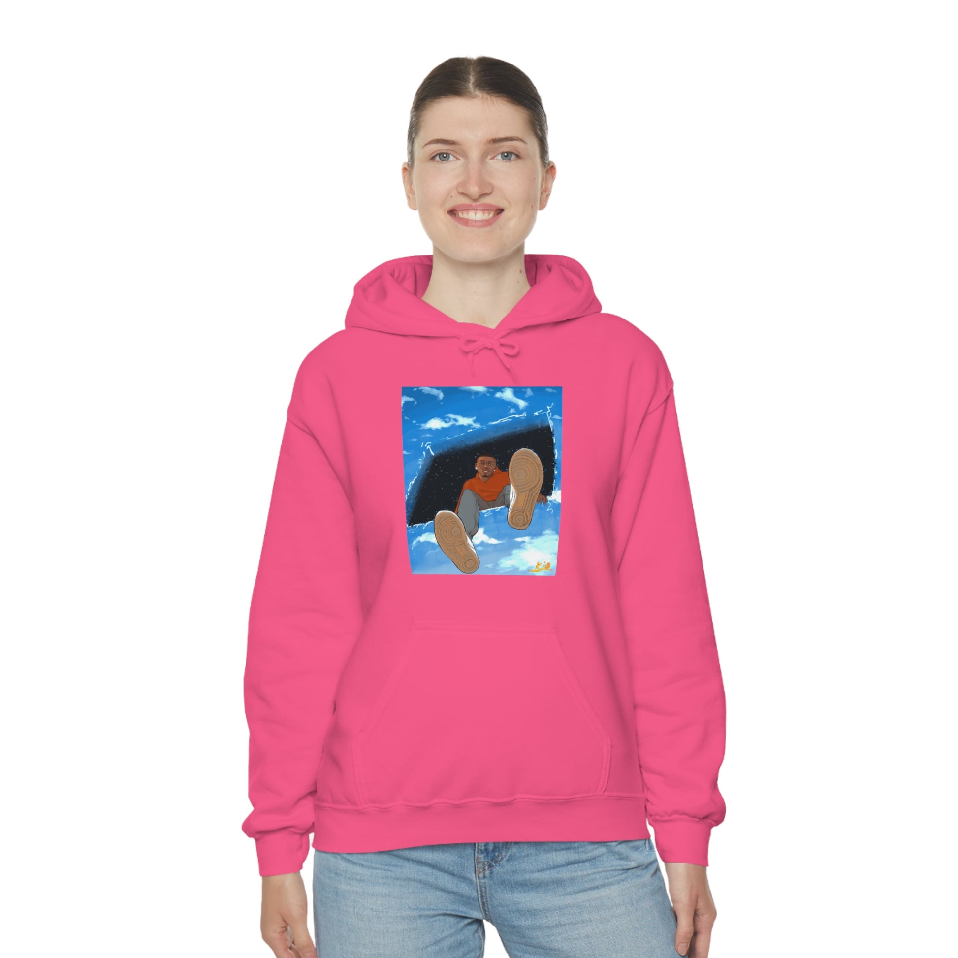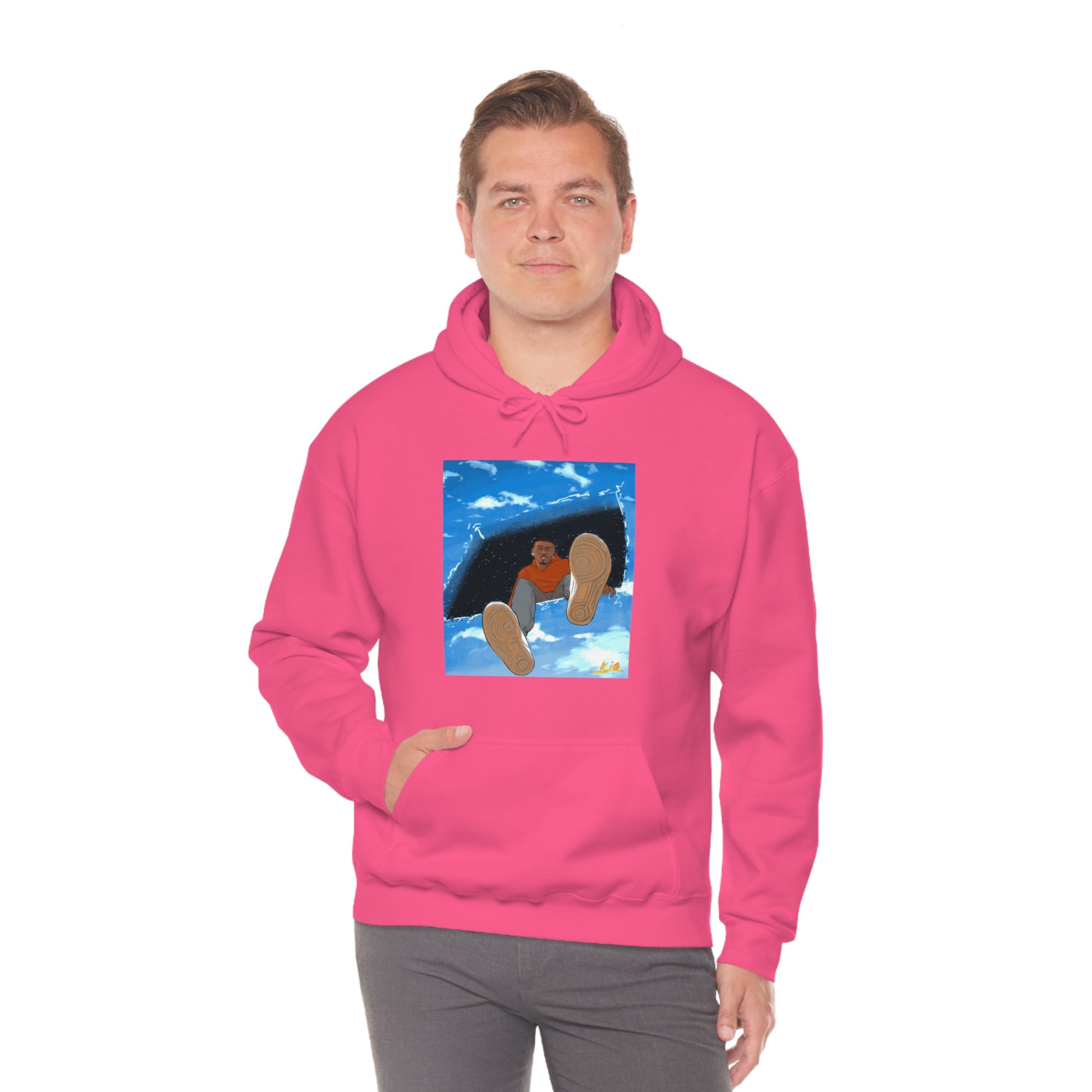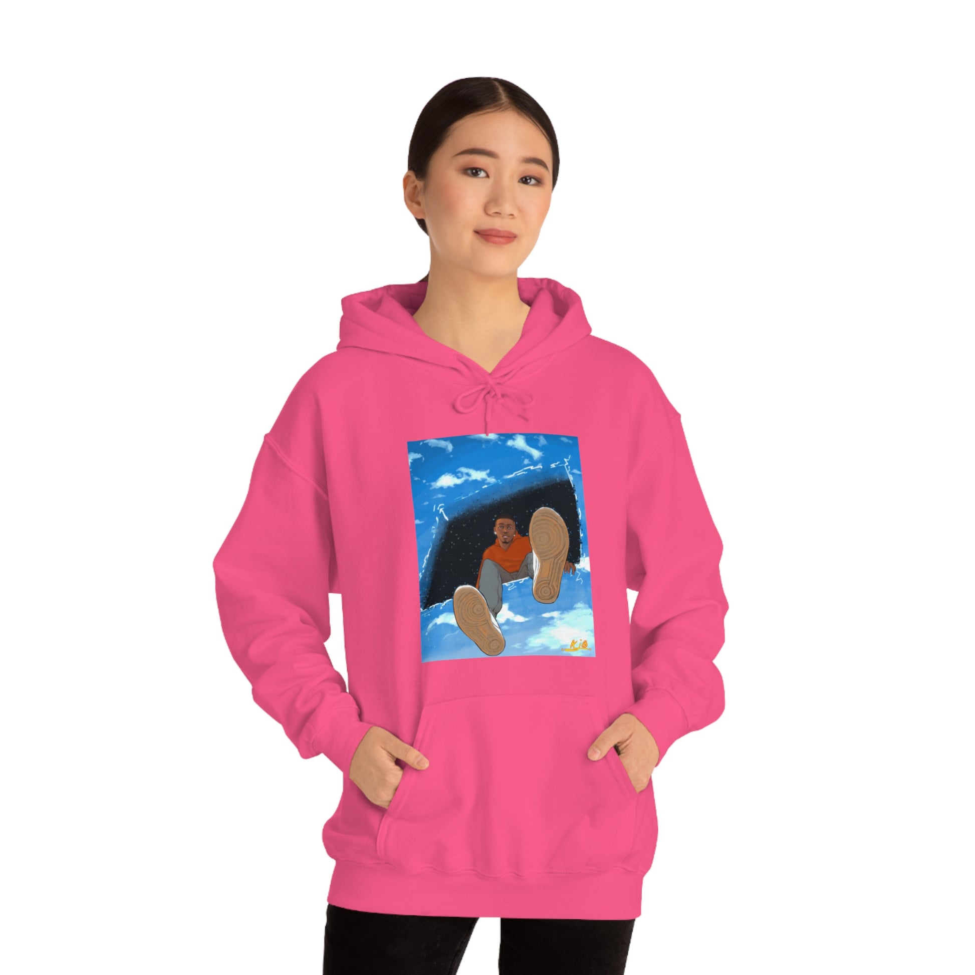 This unisex heavy blend hooded sweatshirt is relaxation itself. Made with a thick blend of cotton and polyester, it feels plush, soft and warm, a perfect choice for any cold day. In the front, the spacious kangaroo pocket adds daily practicality while the hood's drawstring is the same color as the base sweater for extra style points.