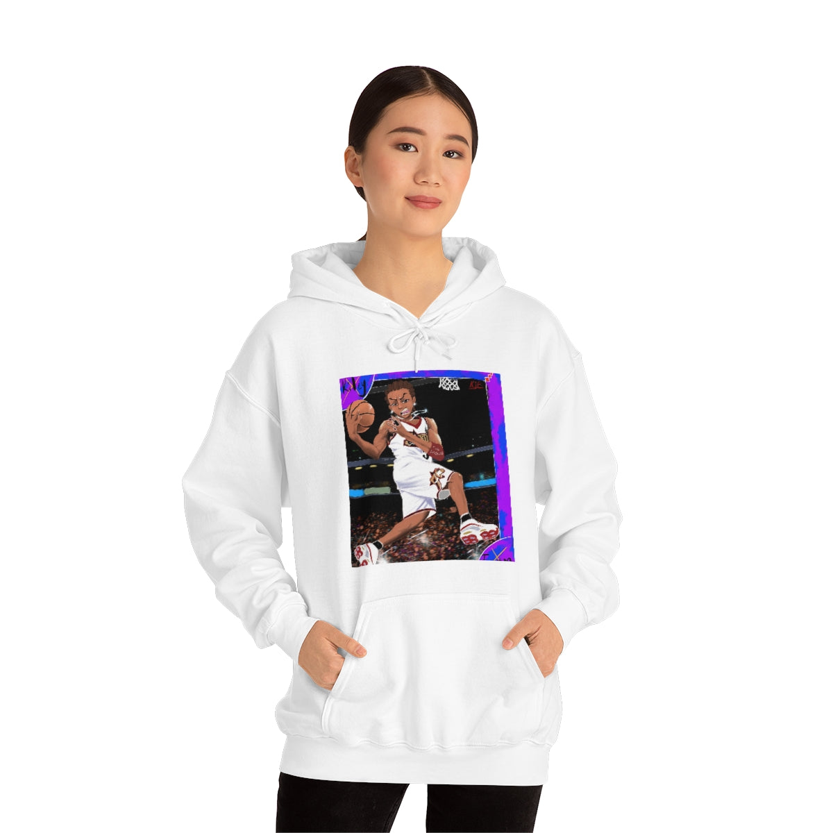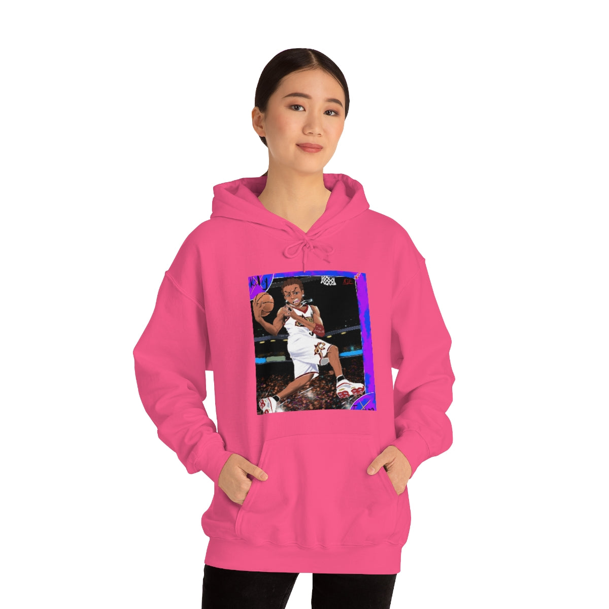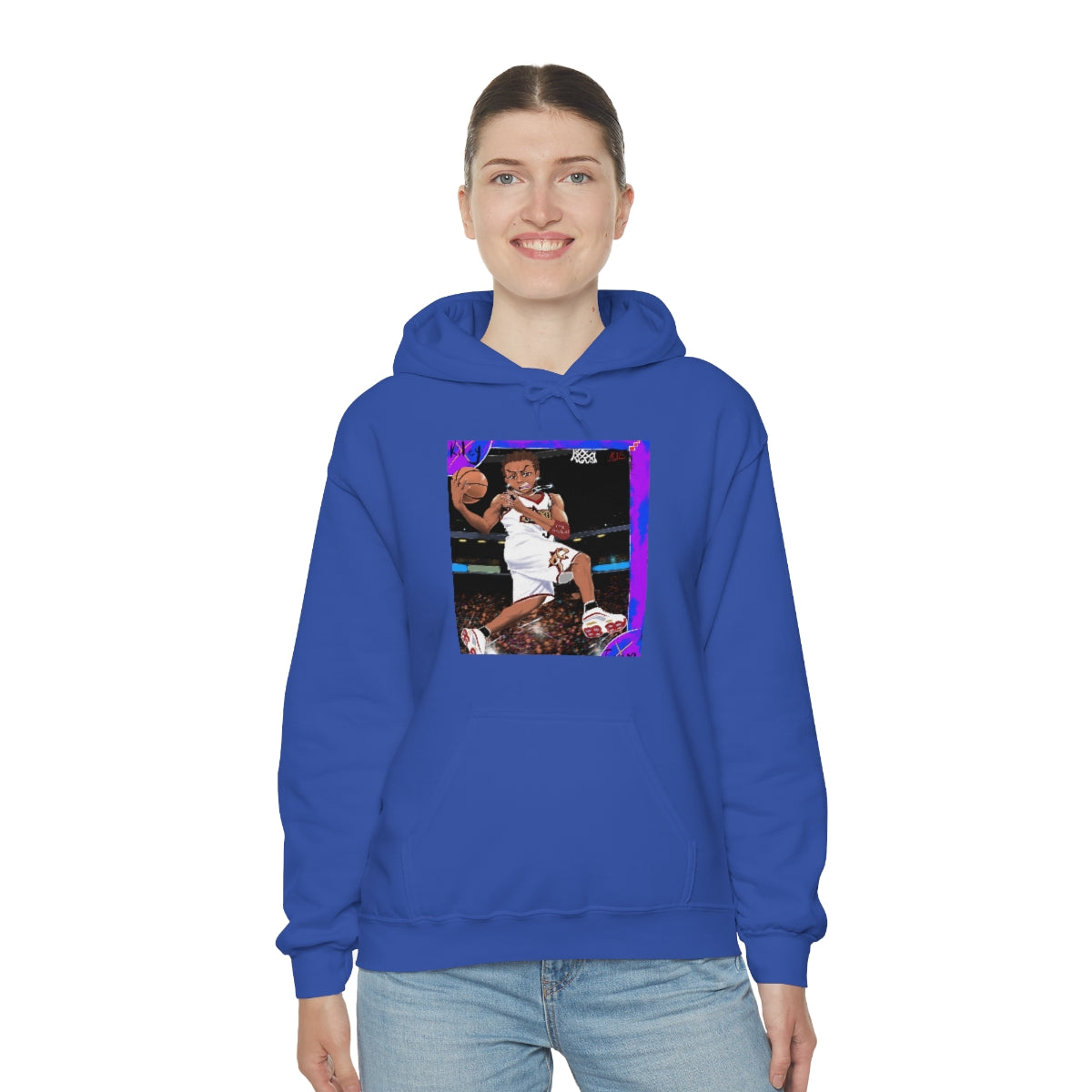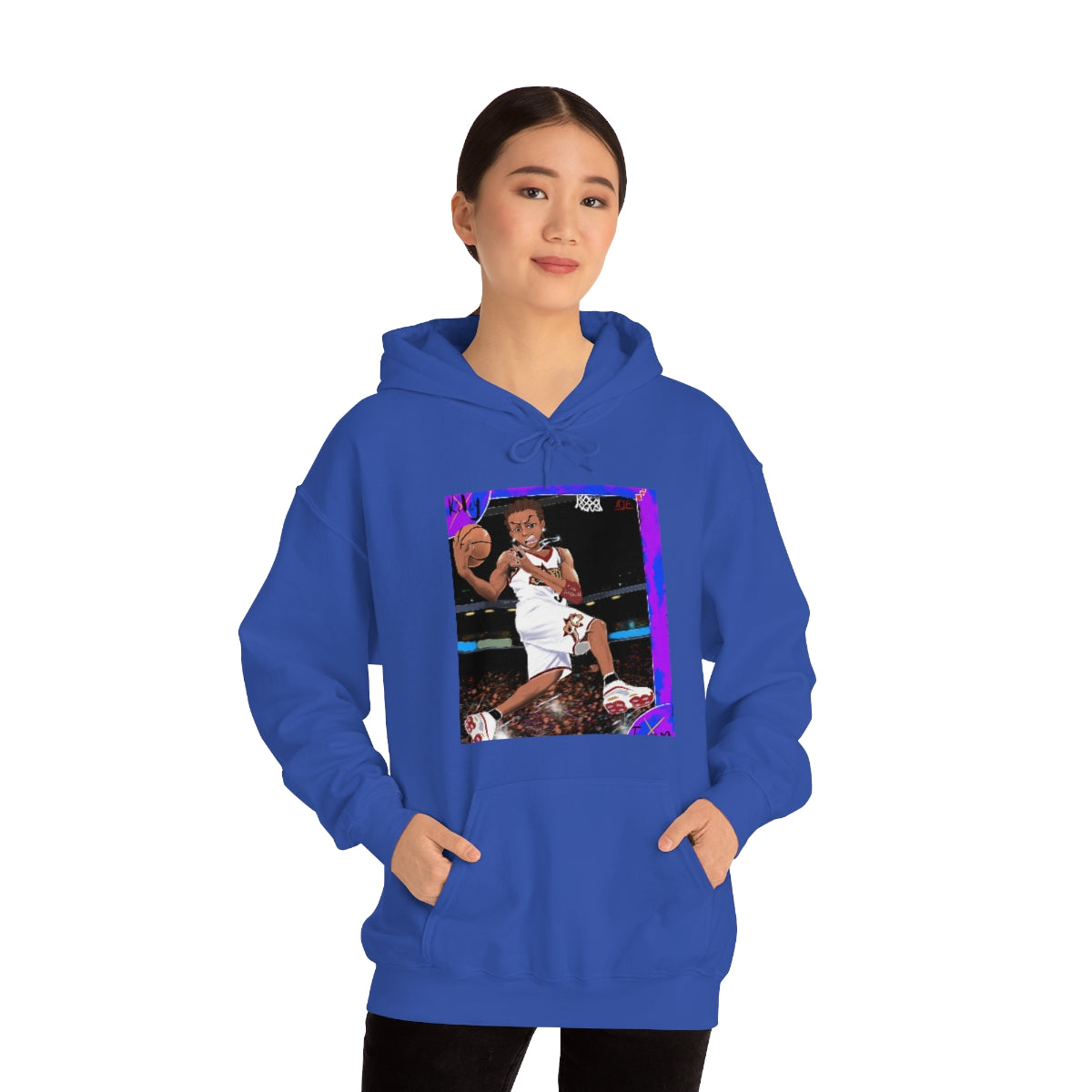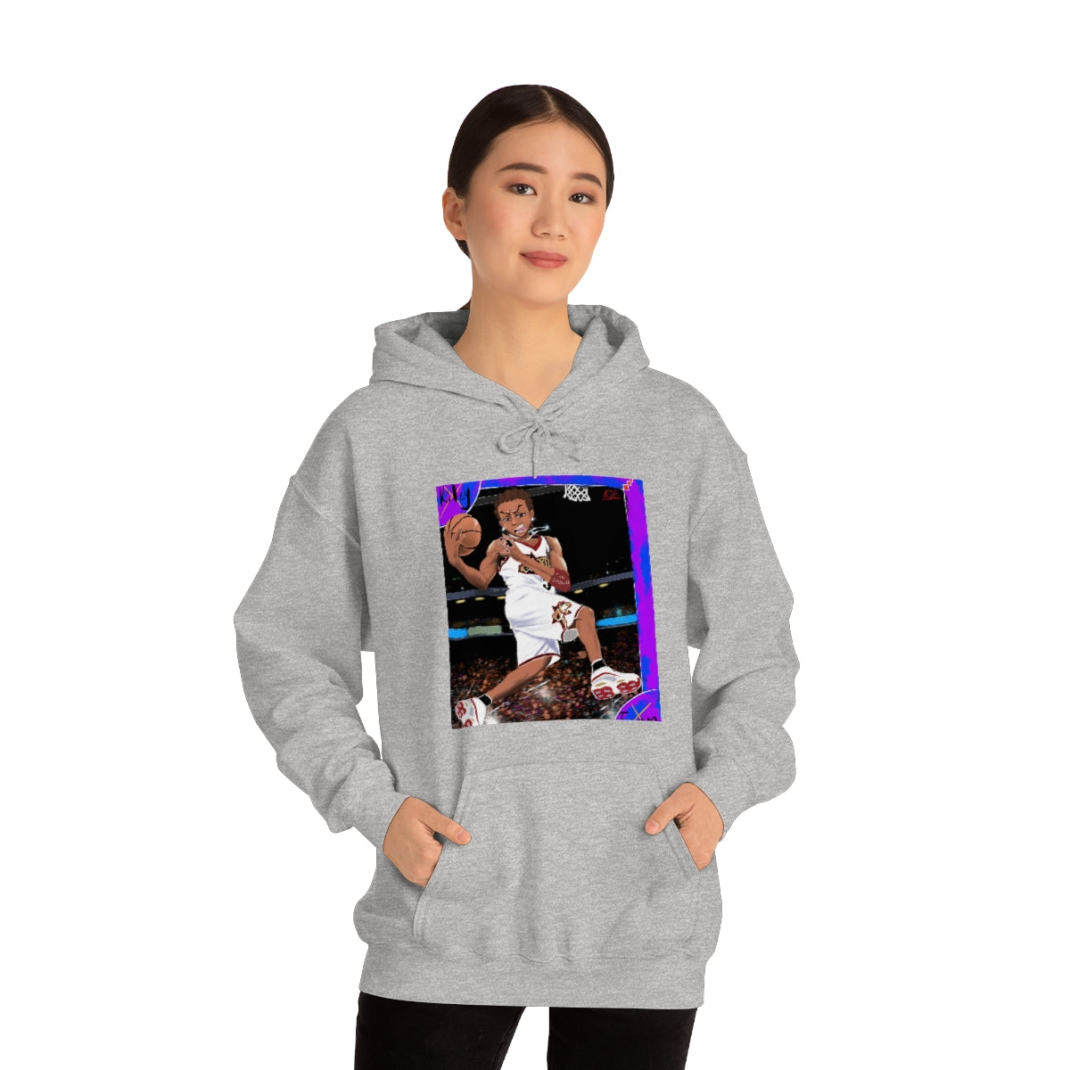 This unisex heavy blend hooded sweatshirt is relaxation itself. Made with a thick blend of cotton and polyester, it feels plush, soft and warm, a perfect choice for any cold day. In the front, the spacious kangaroo pocket adds daily practicality while the hood's drawstring is the same color as the base sweater for extra style points.