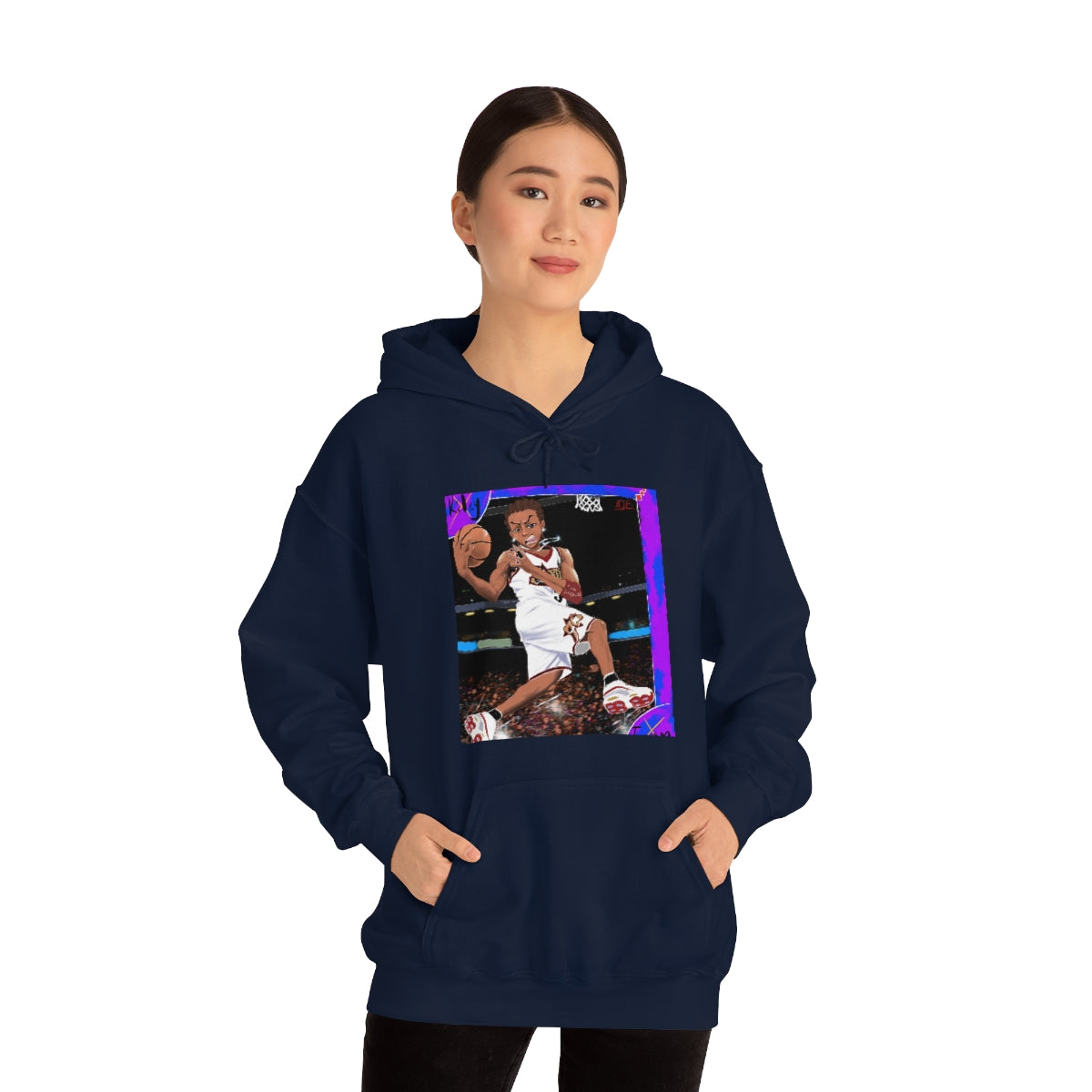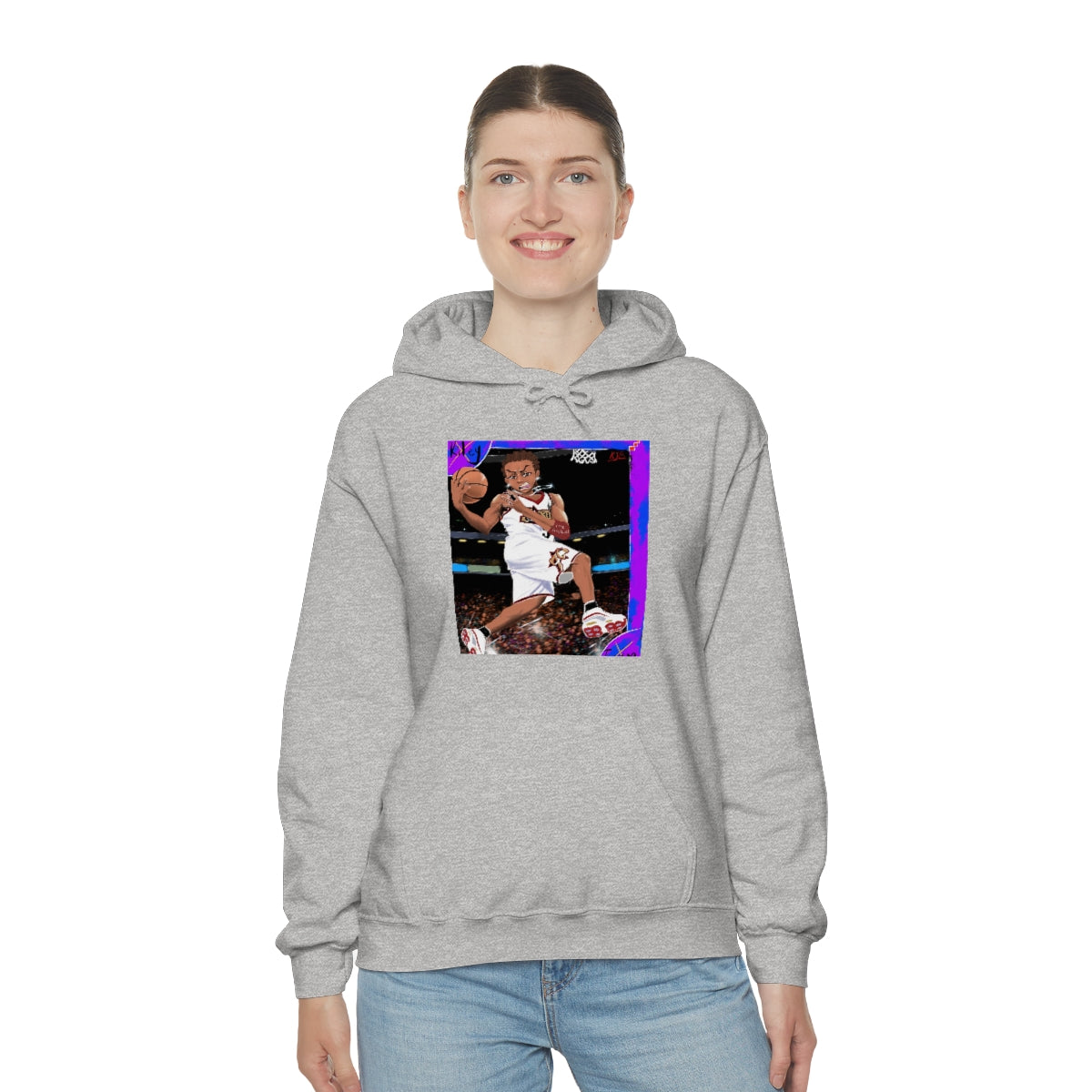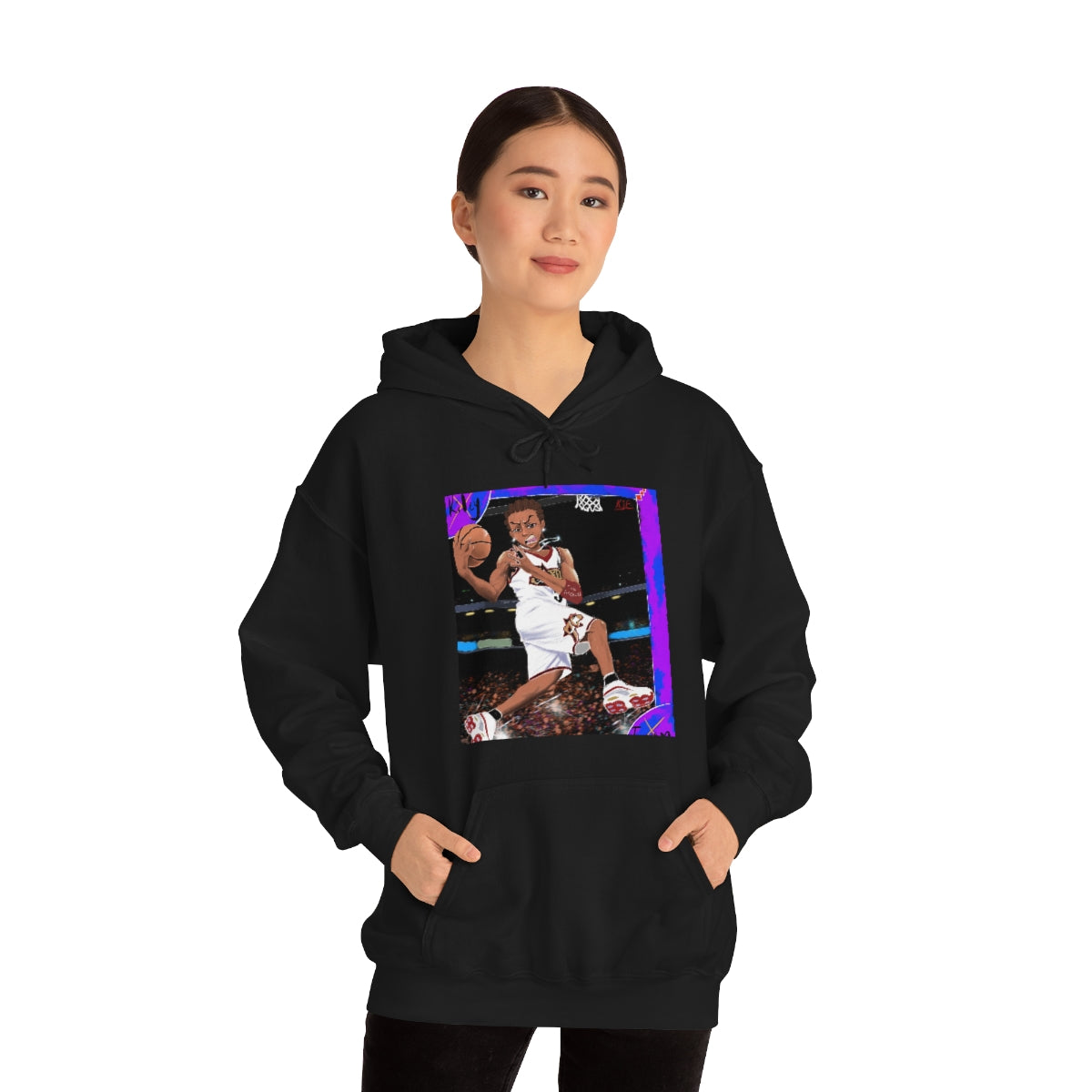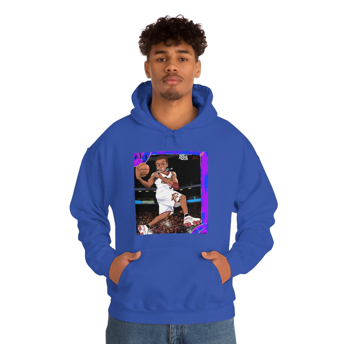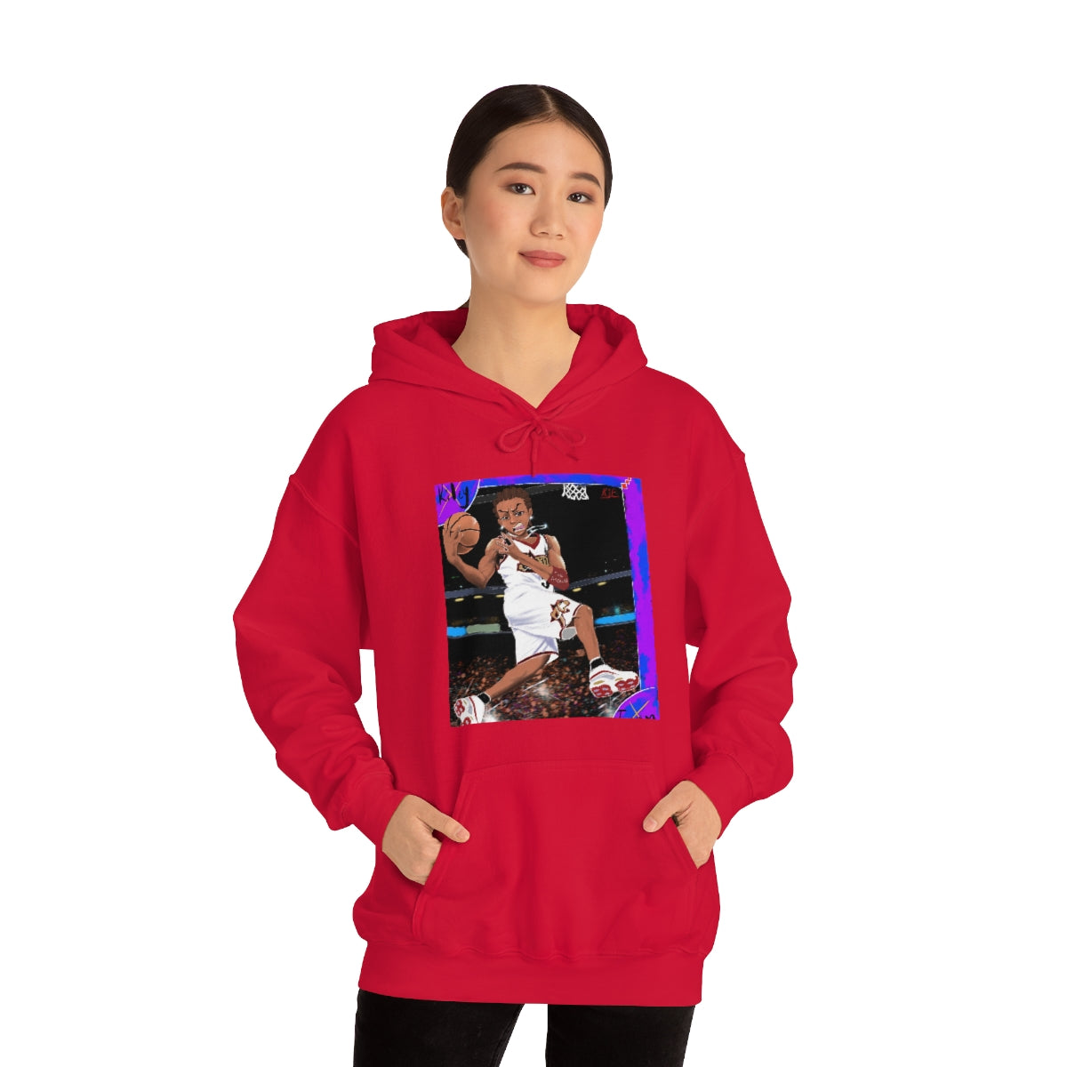 This unisex heavy blend hooded sweatshirt is relaxation itself. Made with a thick blend of cotton and polyester, it feels plush, soft and warm, a perfect choice for any cold day. In the front, the spacious kangaroo pocket adds daily practicality while the hood's drawstring is the same color as the base sweater for extra style points.