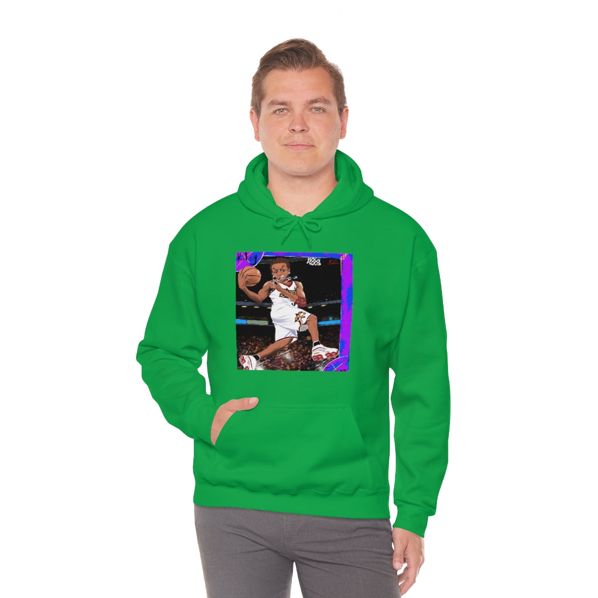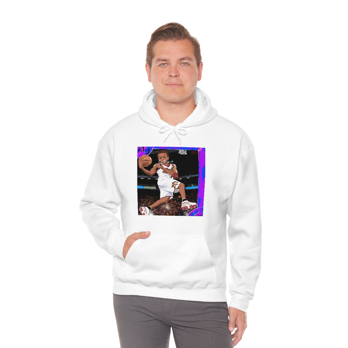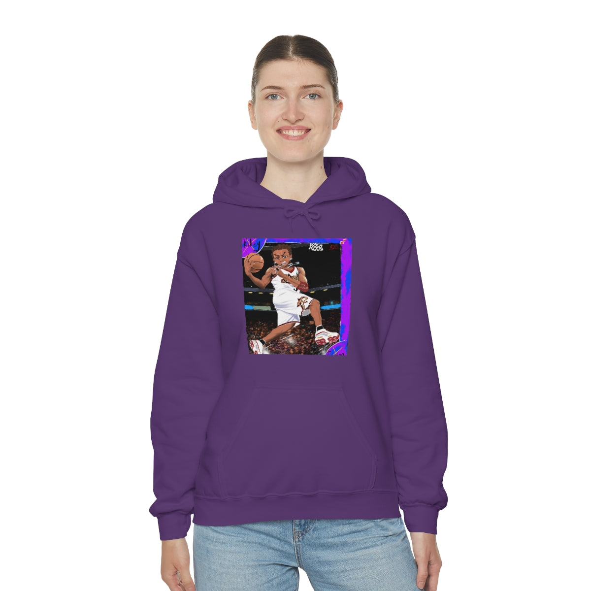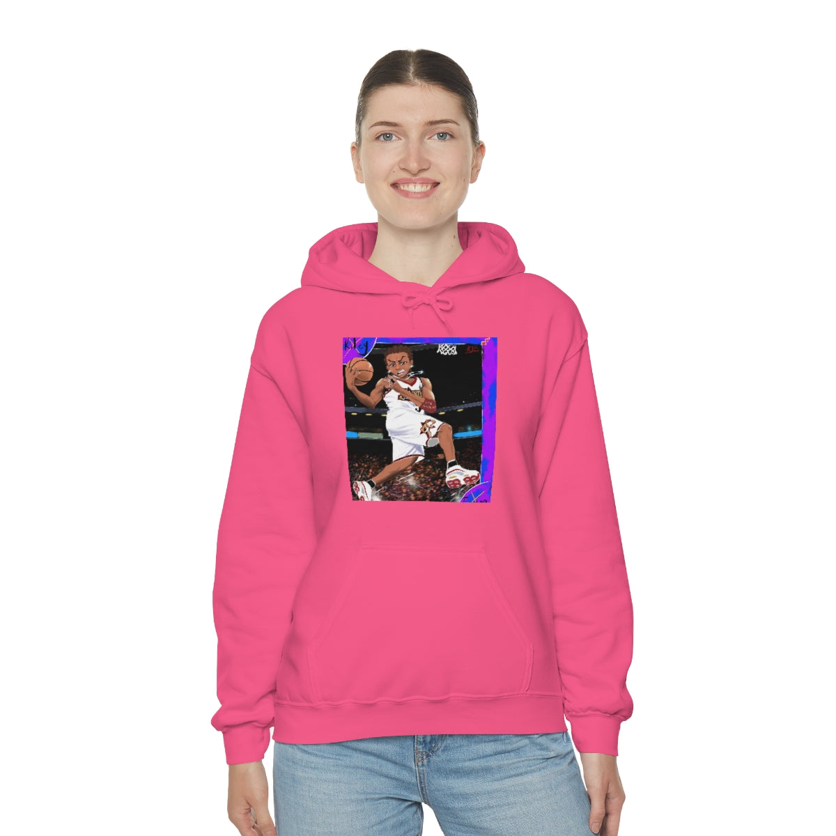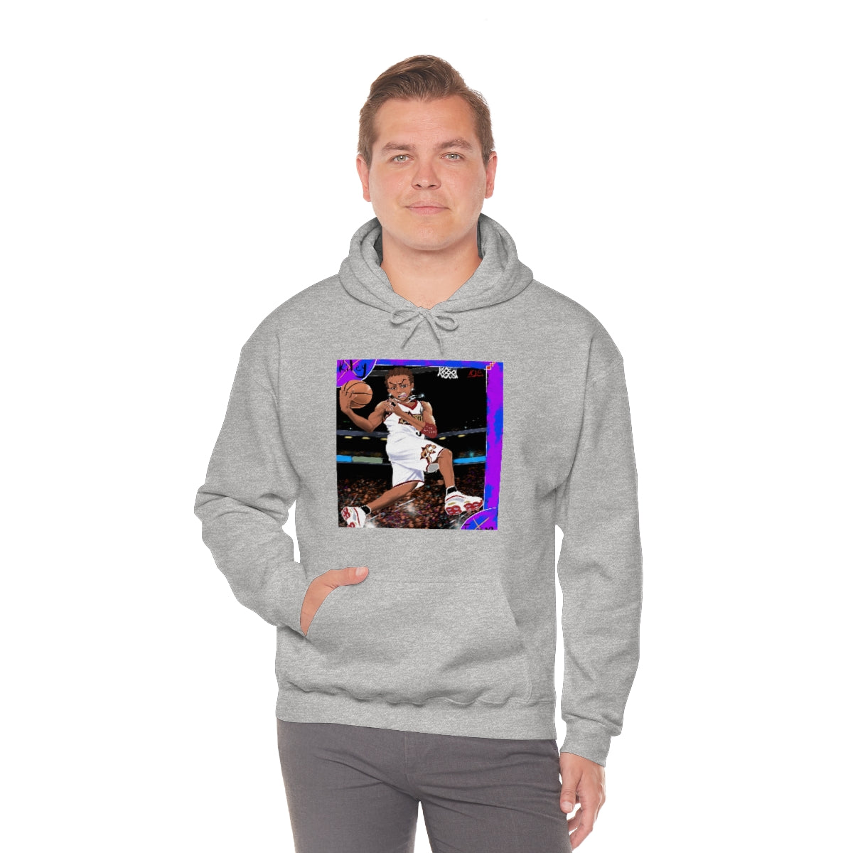 This unisex heavy blend hooded sweatshirt is relaxation itself. Made with a thick blend of cotton and polyester, it feels plush, soft and warm, a perfect choice for any cold day. In the front, the spacious kangaroo pocket adds daily practicality while the hood's drawstring is the same color as the base sweater for extra style points.